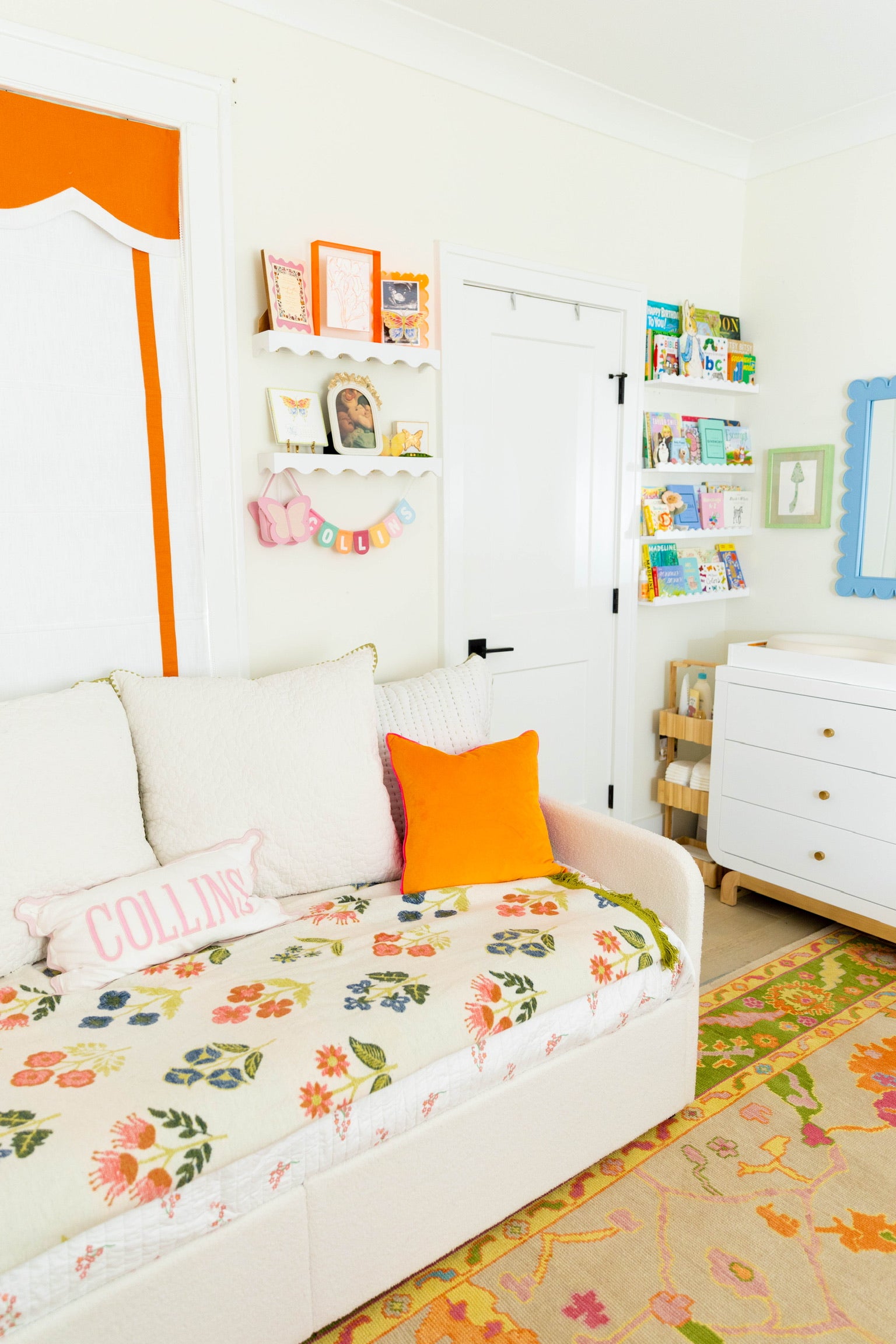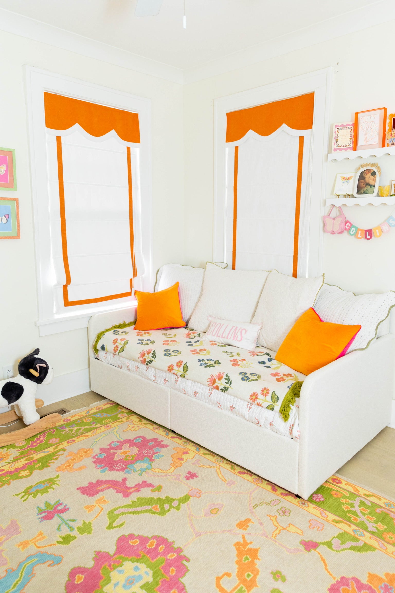 Designed exclusively for tastemaker and Tela Mercantile founder Sarah Collins Lawler, the Collins Rug is a vibrant celebration of color and creativity. Handwoven with a playful yet refined palette of oranges, greens, pinks, and yellows, this custom design captures Sarah’s joyful, eclectic spirit and love for layered, welcoming interiors. Whether anchoring a room or adding a lively accent, the Collins brings warmth, personality, and effortless charm to any space.